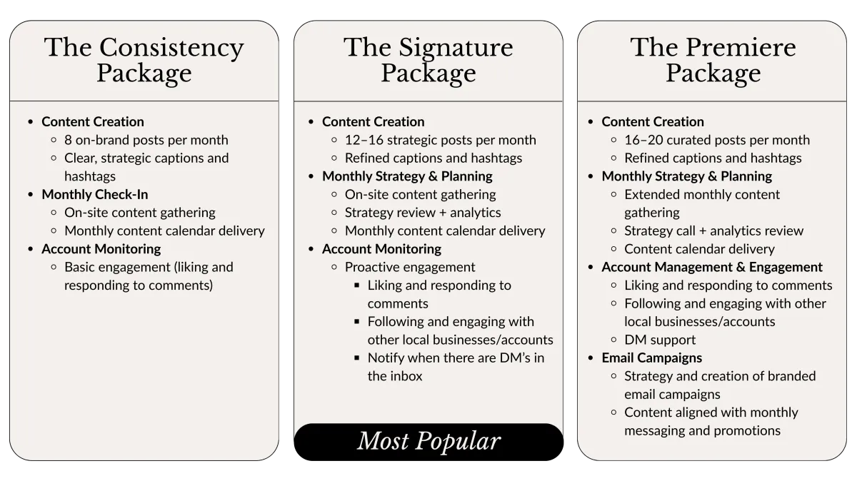 Whether you need full-service management, fresh content, or strategic guidance, we’re here to help your business show up beautifully and confidently online. Explore our services and find the right fit for your goals.